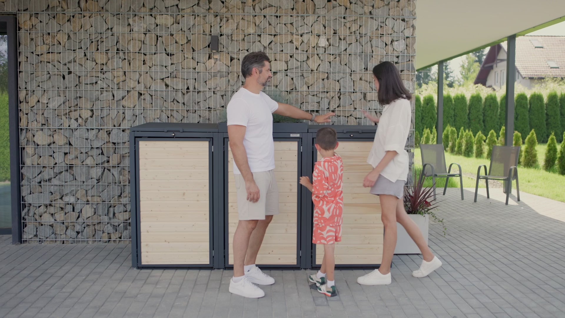 BINBOXES für 1 Mülltonne von 160 bis 240 Litern. Gehäuse aus der HATCH-Linie, d.h. mit einer Klappe für einfachen Zugang zur Mülltonne. BinBOX und Mülltonnengehäuse werden aus 1 mm verzinktem Stahl hergestellt, der mit pulverbeschichtetem Lack versehen ist und gegen äußere Einflüsse beständig ist. Unsere modularen Stahl-Mülltonnengehäuse zeichnen sich durch hohe Qualität und modernes Design aus.